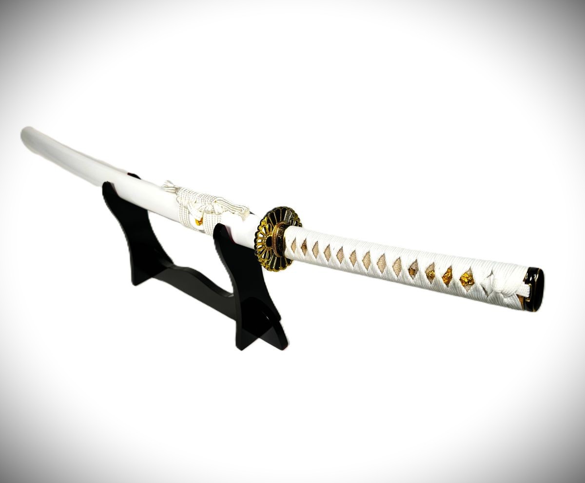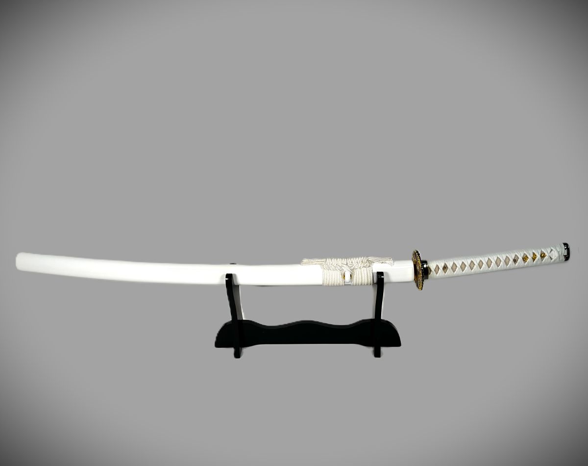 "Sujin" Katana mit weißer Holzlackscheide und goldene Beschläge