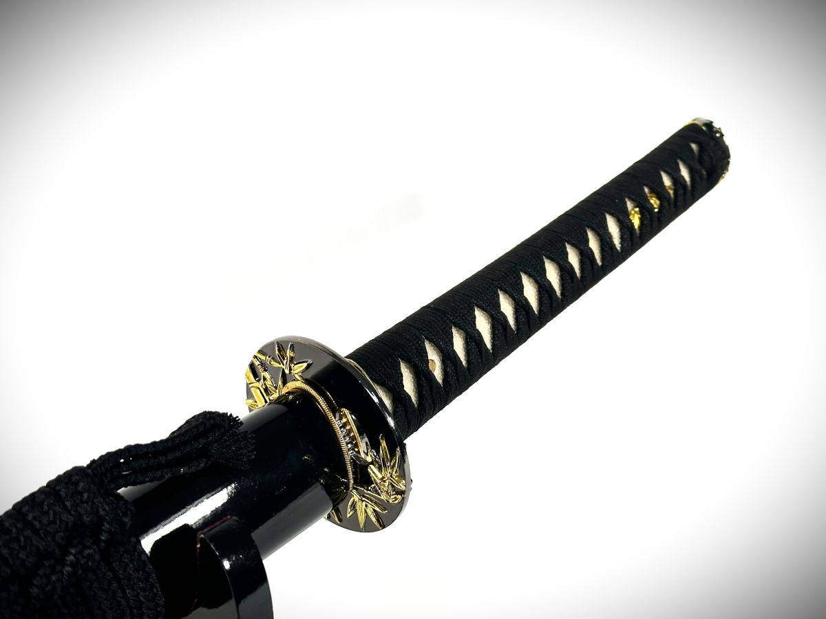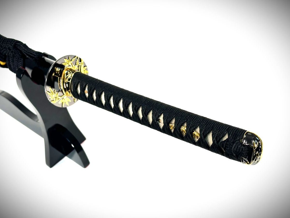 Die Griffwicklung (Tsuka-Ito) ist aus schwarzer Baumwolle traditionell angebracht.