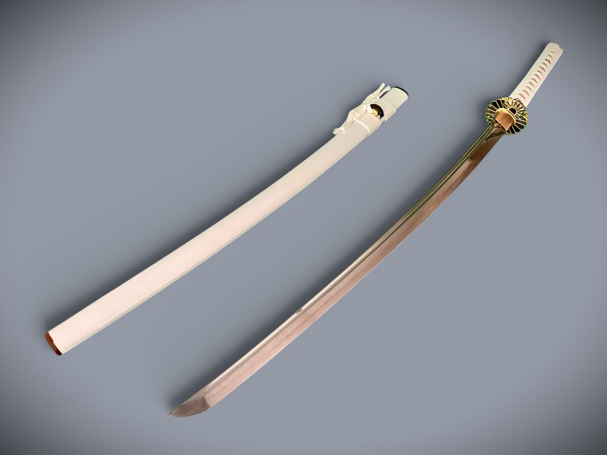 - Zierrate (Tsuba, Menuki, Fuchi und Kashira) handgearbeitet.